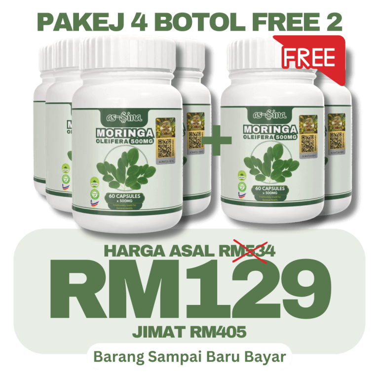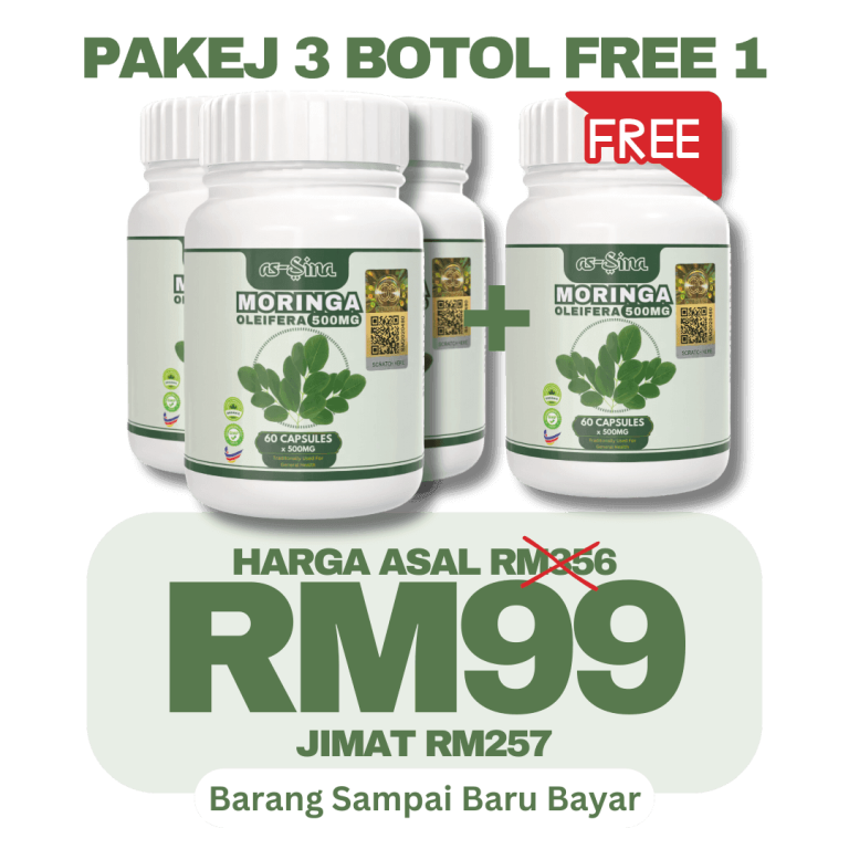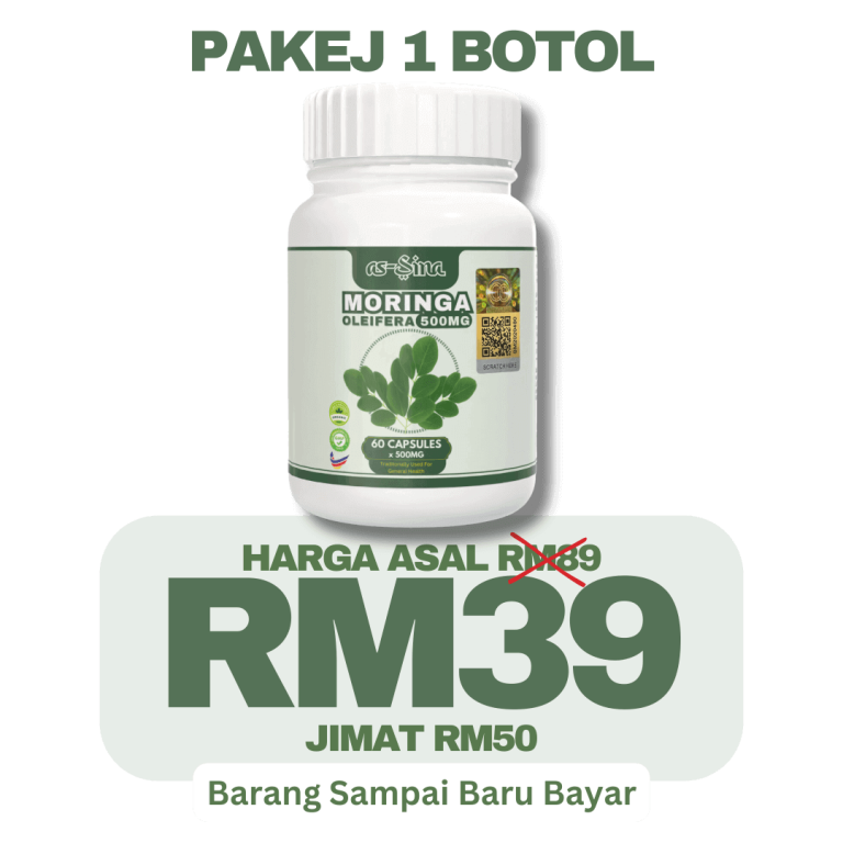 1 botol Moringa Oleifera as-Sina adalah untuk 30 hari pengunaan.